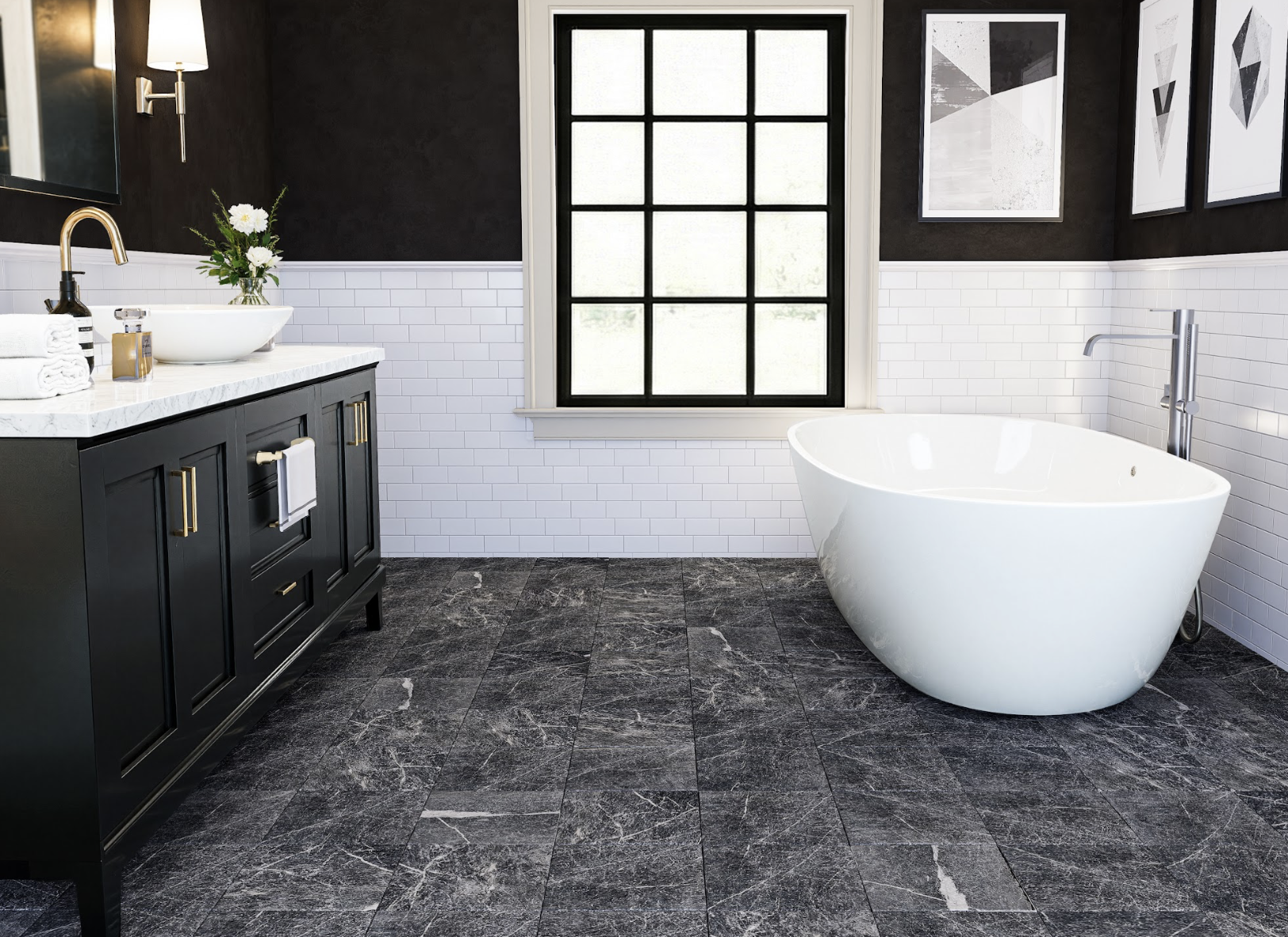 Alexander Black is a rich natural stone featuring deep charcoal tones accented by striking white veining. Its bold contrast and natural movement create a dramatic yet timeless look, making it a versatile choice for flooring, backsplashes, feature walls, and other interior applications.
