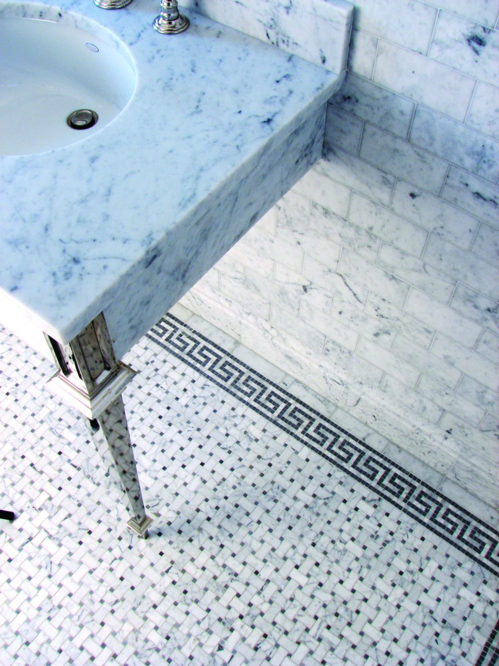 Also great for marble mosaic tiles. It has an all so elegant white background and classic grey veining.